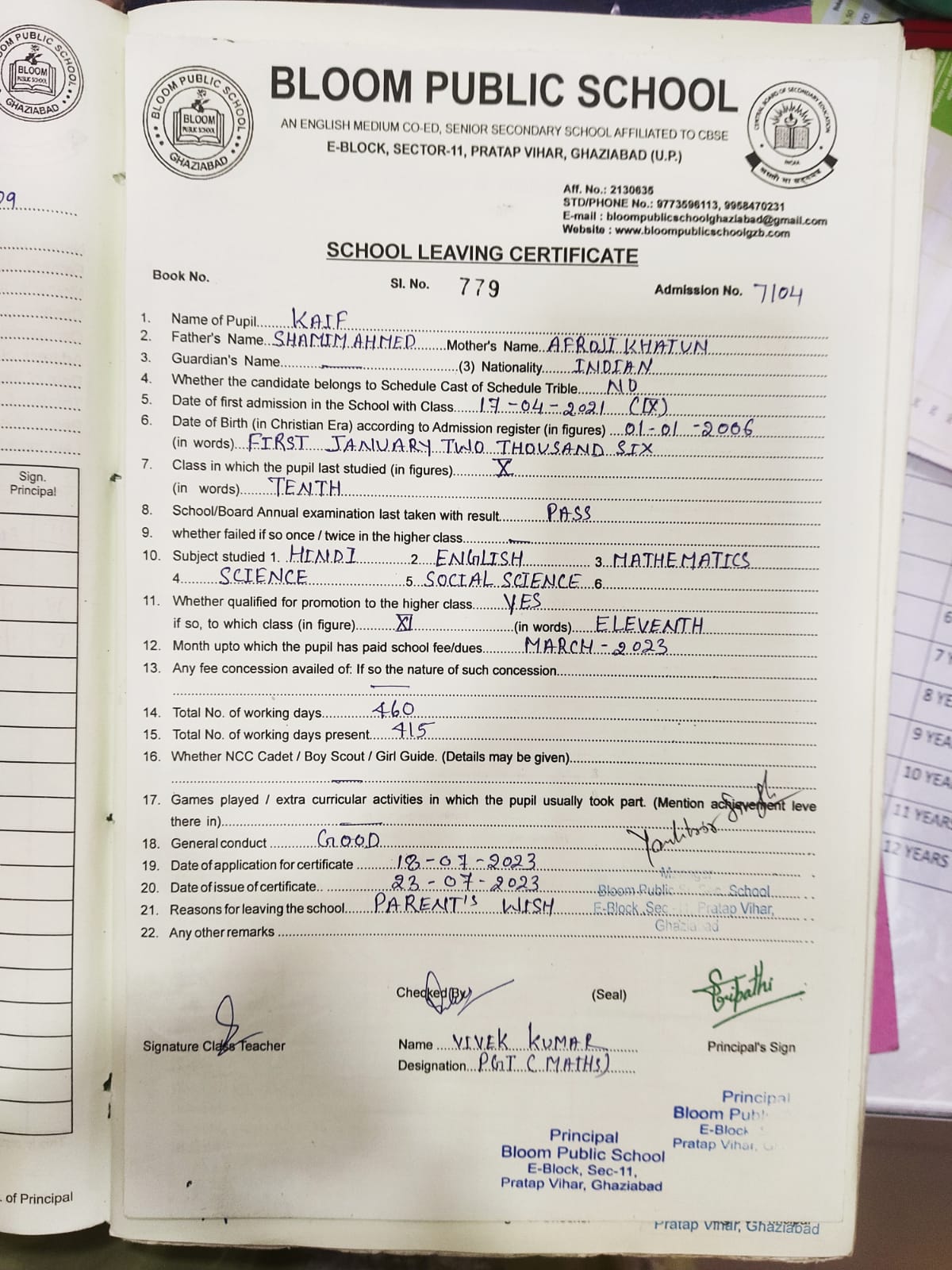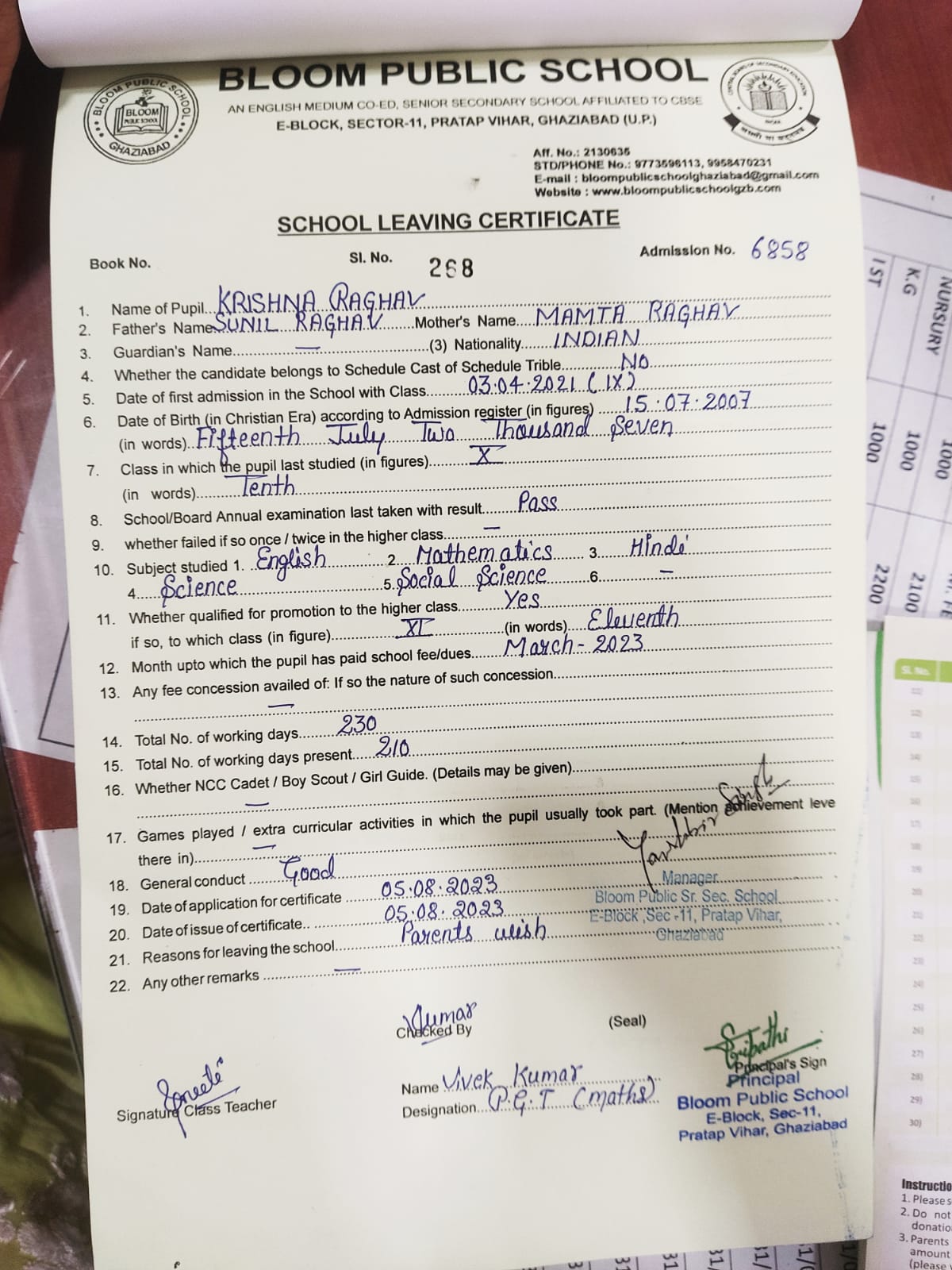 Roll Number |
